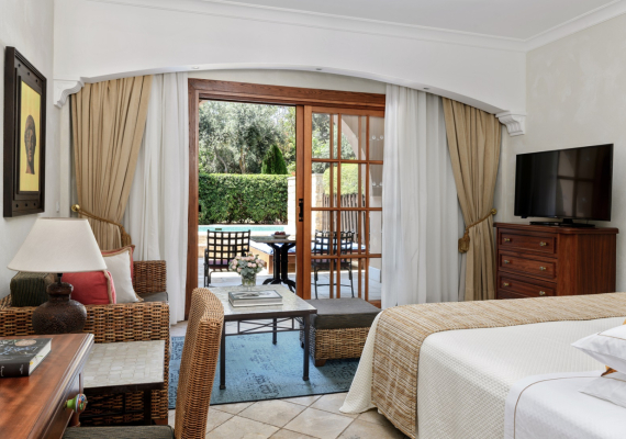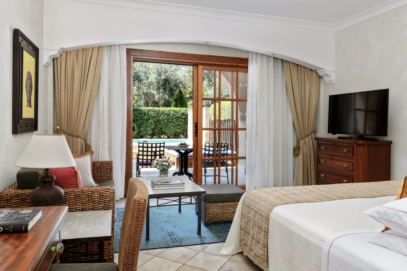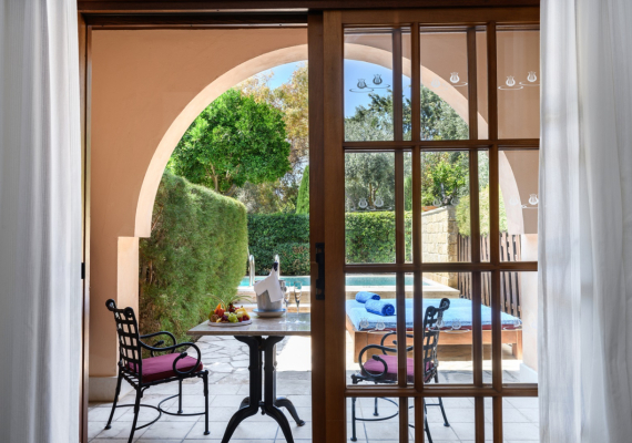 These ground floor studios are enhanced by an exclusive hedge-lined garden with private plunge pool for the ultimate luxury experience. The studios also have the advantage of exclusive access to the hotel’s dedicated adults-only swimming pool, privately set aside from the main building in a sunken courtyard.