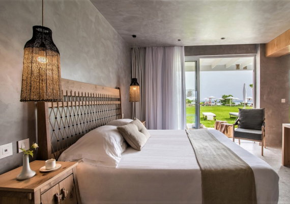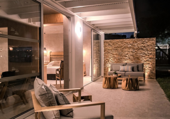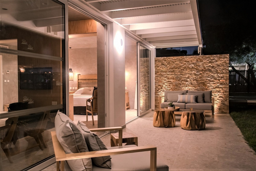 These rooms are located separately from the main building and have access to the lawn and the beach. They consist of two rooms: a living room and a bedroom, have two bathrooms.