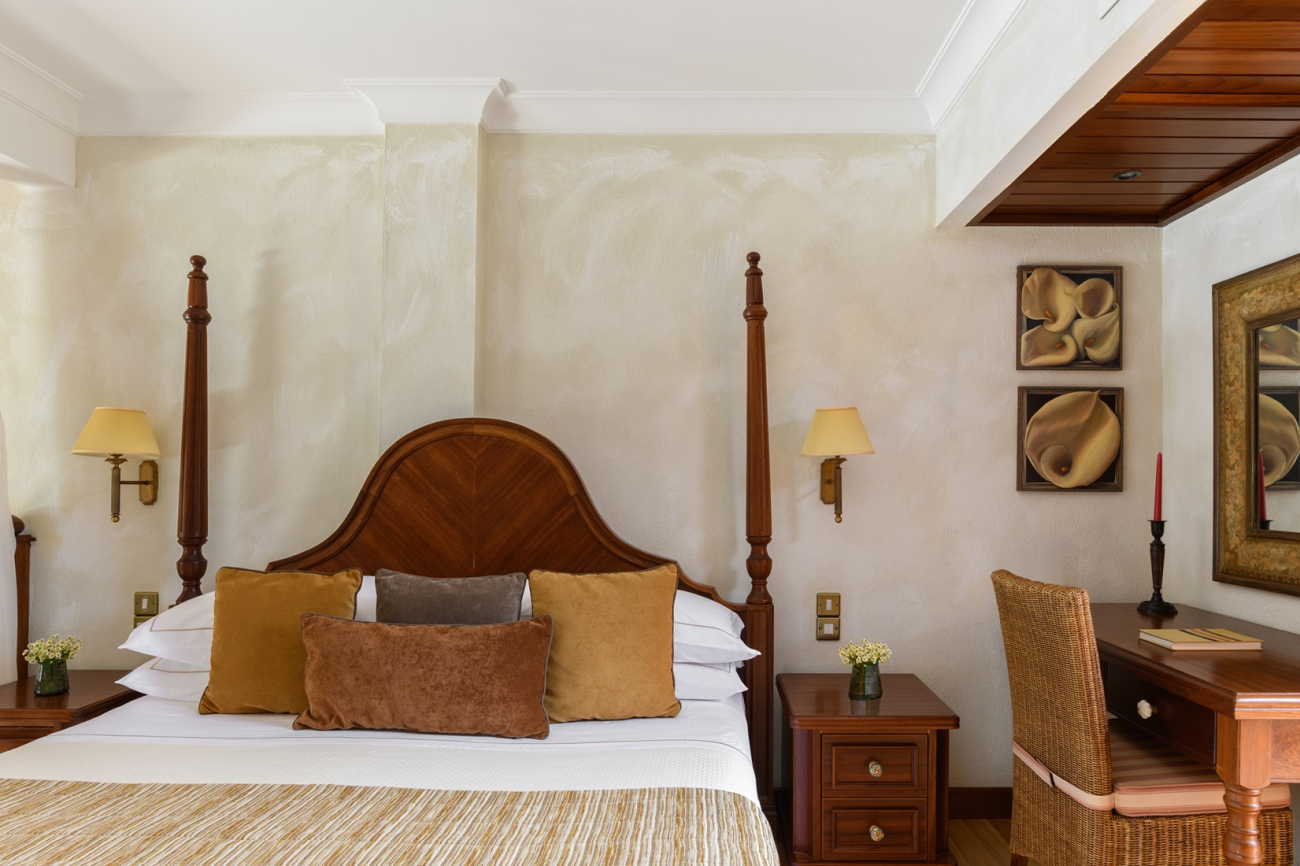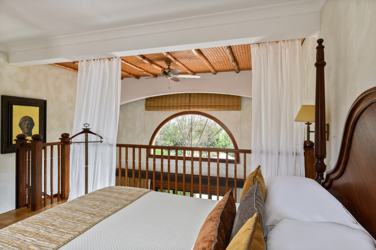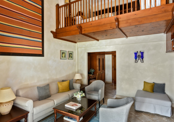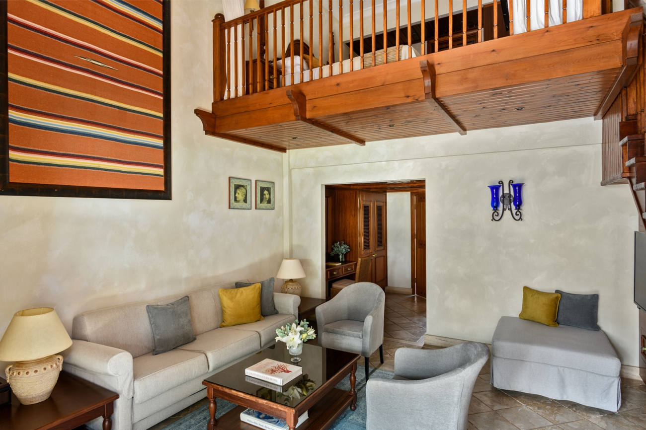The villas are furnished with a large sofa bed and chic armchairs in the living area, while the mezzanine sleeping gallery is fitted with a separate shower room and a balcony that overlooks Elysium’s palatial grounds. Each villa has its own patio garden complete with plunge pool, and exclusive access to the dedicated adults-only swimming pool.