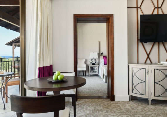 The multipurpose suites comprise one artfully appointed bedroom, one spacious living room and an expansive balcony. The living room area features a sectional sofa with pull-out bed. An adjoining room can be reserved to create an expansive two-bedroom suite.