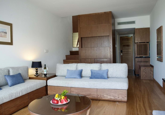 These duplex suites consist of a living room with its own bathroom on the ground floor and a bedroom on the first floor. The bedroom has a dressing room, a large bathroom and a balcony overlooking the garden.
