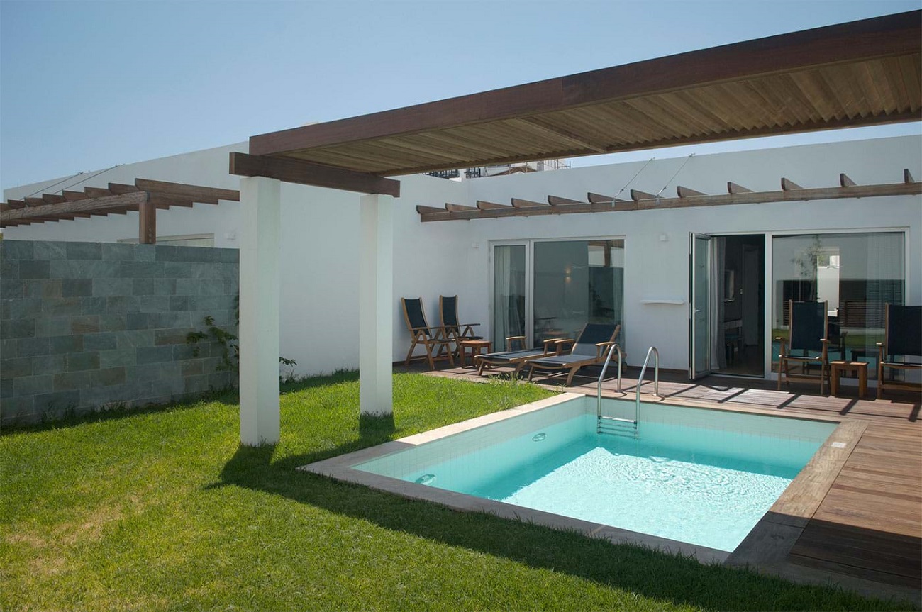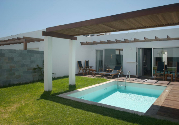 These suites have a large garden and a private pool. The living room has two large sofas, and the spacious bedroom has its own walk-in closet.