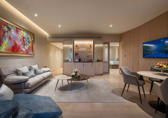 Smart room technology system available via an app on guests' devices. It allows you to adjust the lighting, control the air conditioning and electronic curtains, view hotel information, order room service, and set a “do not disturb” or “room cleaning” mode