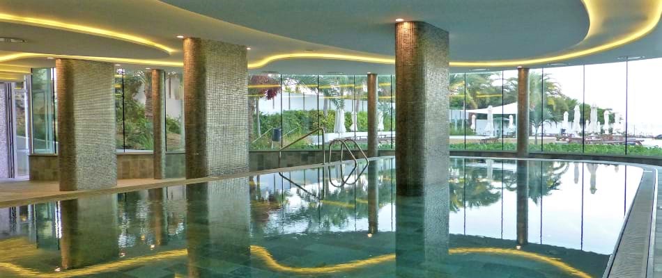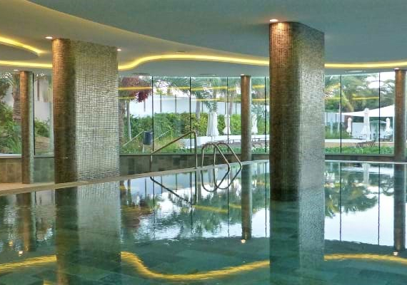 The indoor heated pool, located next to the Pearl Spa, has natural light and views of the sea, offering guests the privilege of a cool season swim.