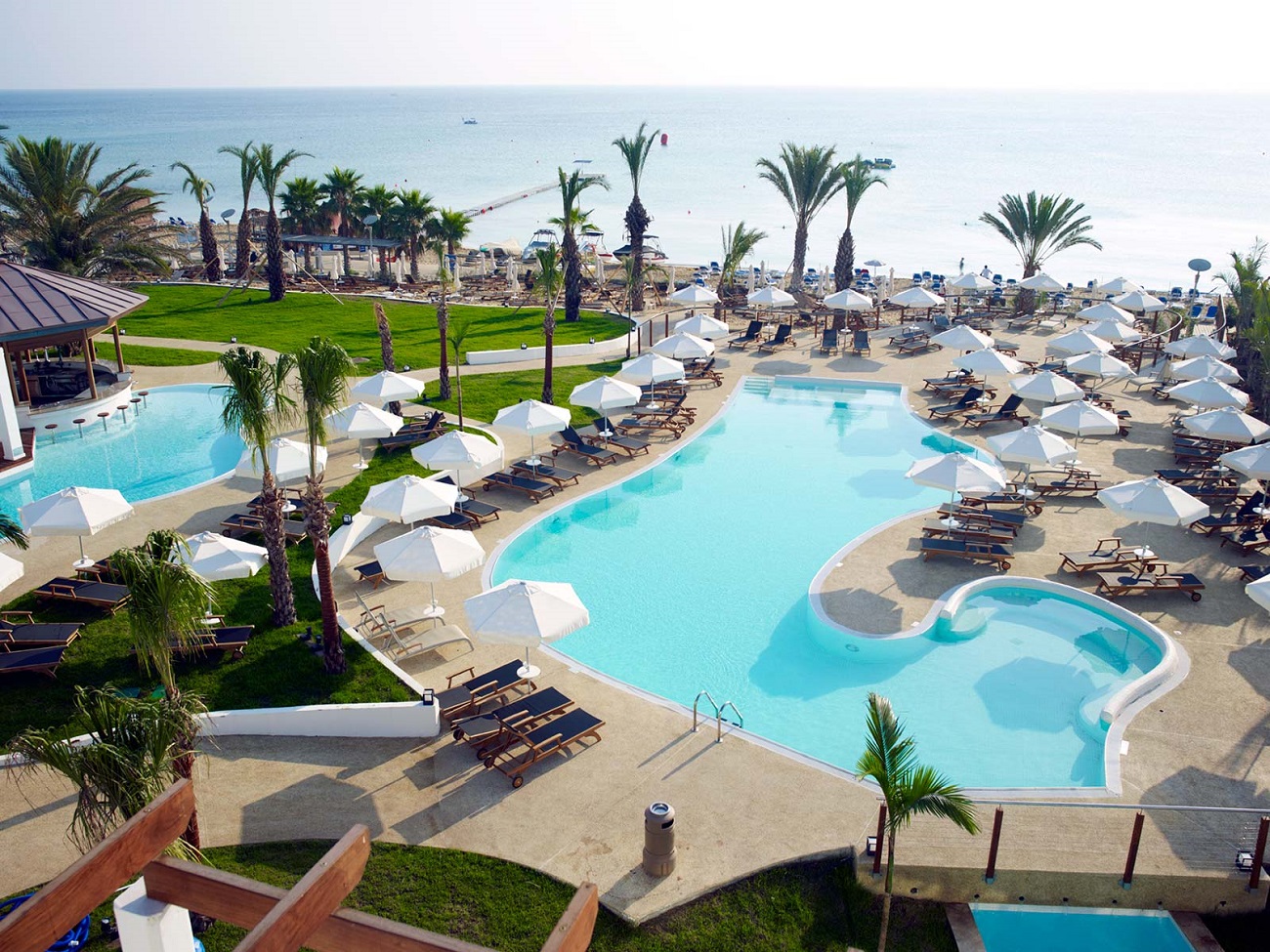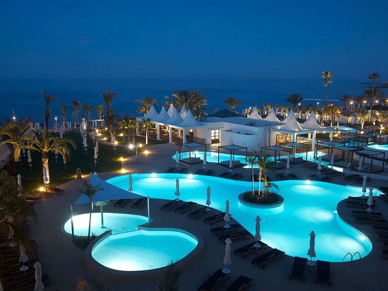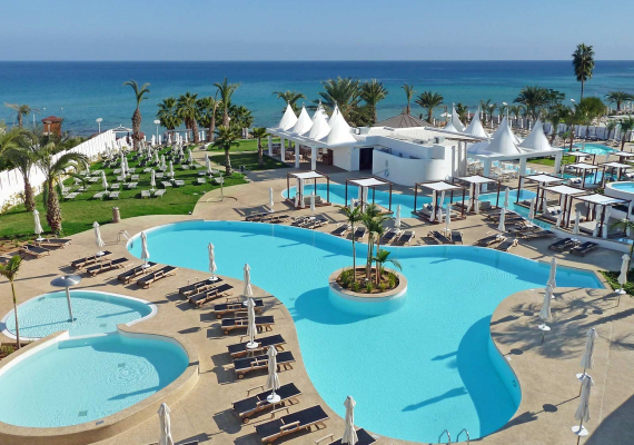 With four outdoor pools to choose from, guests are sure to find the one that best suits their relaxation style. Nearby is a shallow children's pool with lots of fun water features for the little ones. There are two pools exclusively for adults, one of which leads to the bar and the other has a whirlpool area for relaxation. Fresh beach towels are available daily at the pool reception desk.