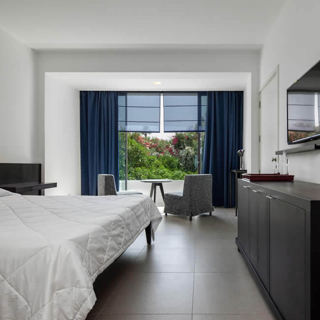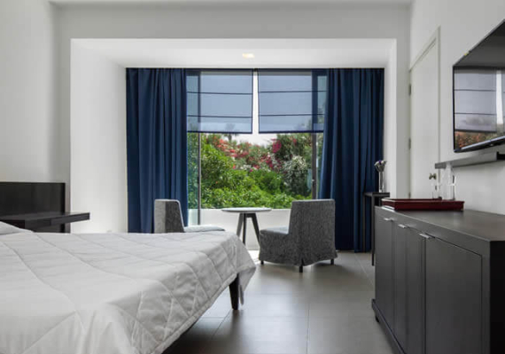 Два смежных номера Standard Inland View. Имеют большие окна с видом на сад. Без балконов.