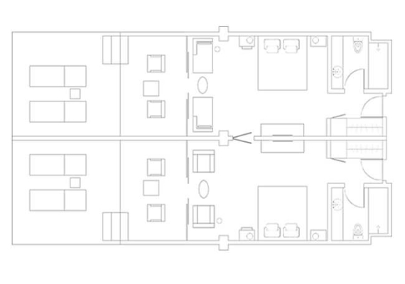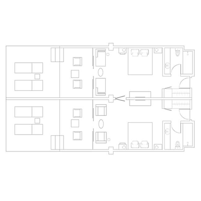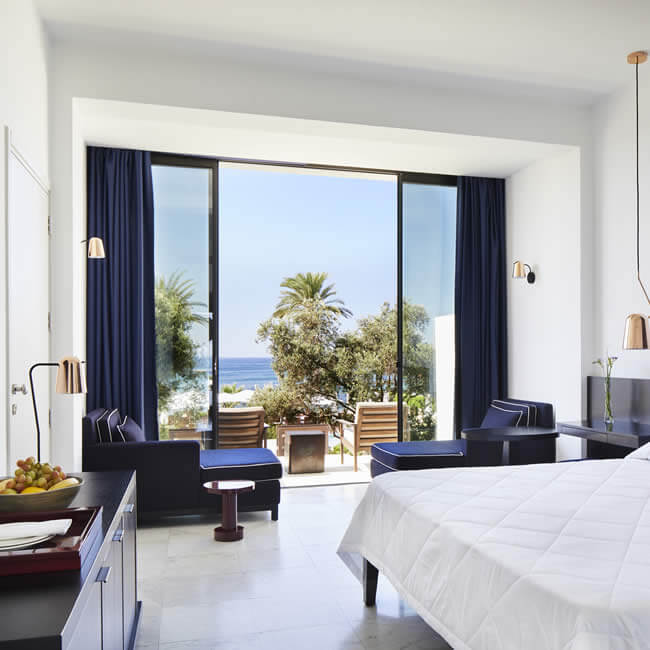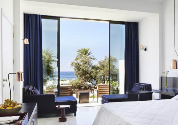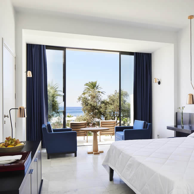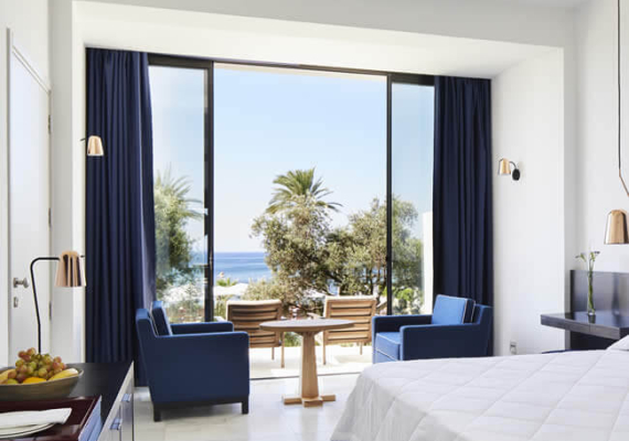Два смежных номера Terrace Sea View на первом этаже главного здания, с террасами, выходящими на лужайку.