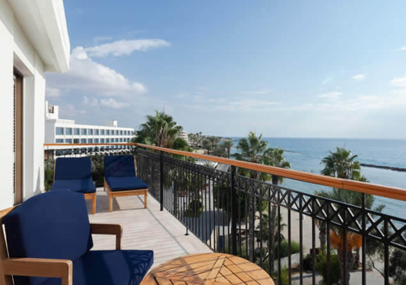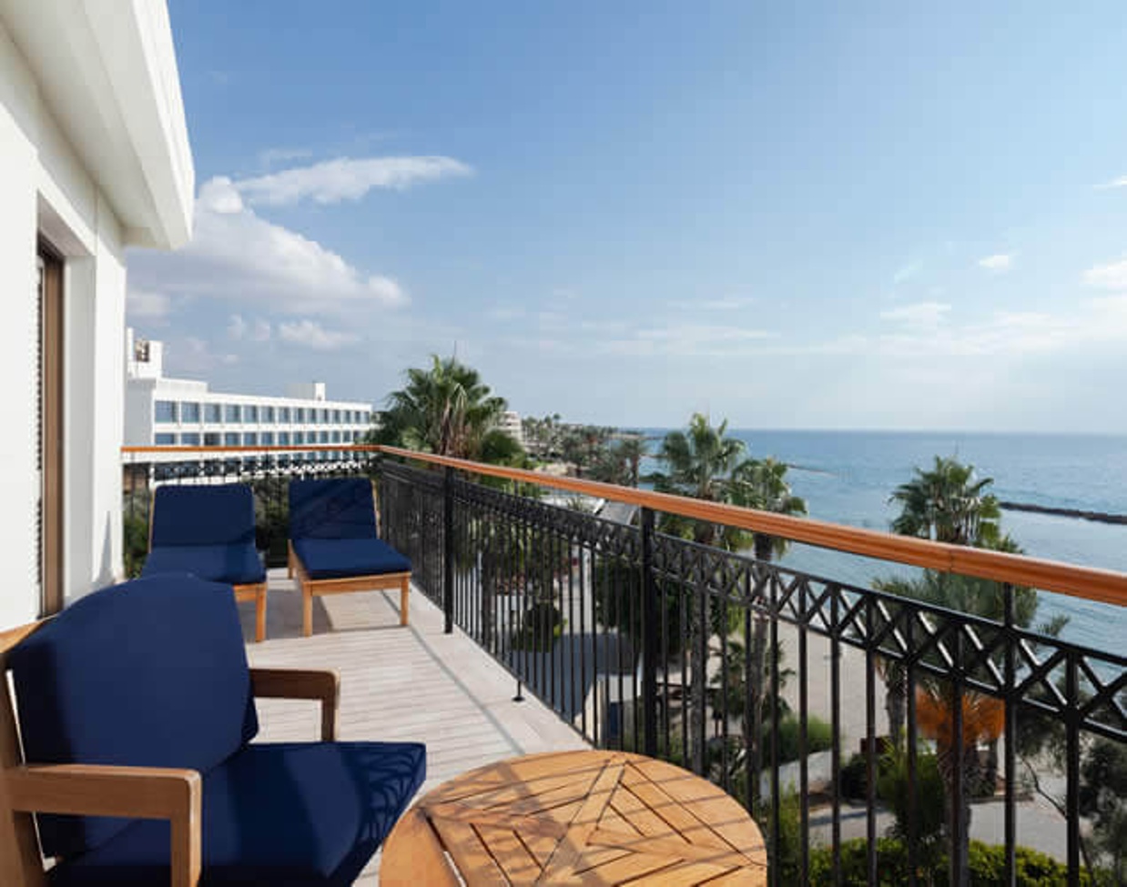 На балконах установлены шезлонги.
