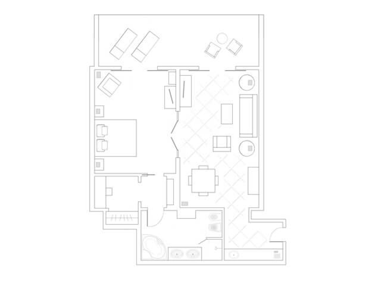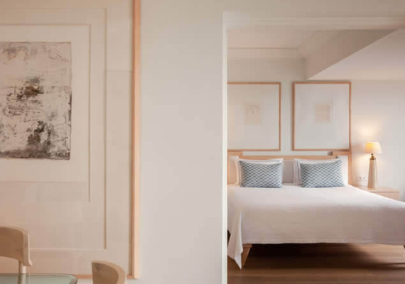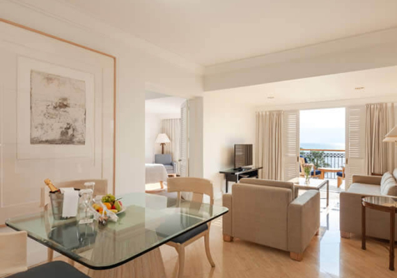 Сьюты в традиционном стиле расположены на самом верхнем этаже отеля и располагают элегантной спальней, отдельной гостиной-столовой, украшенной оригинальными произведениями искусства, и ванными комнатами с душевыми кабинами и джакузи.